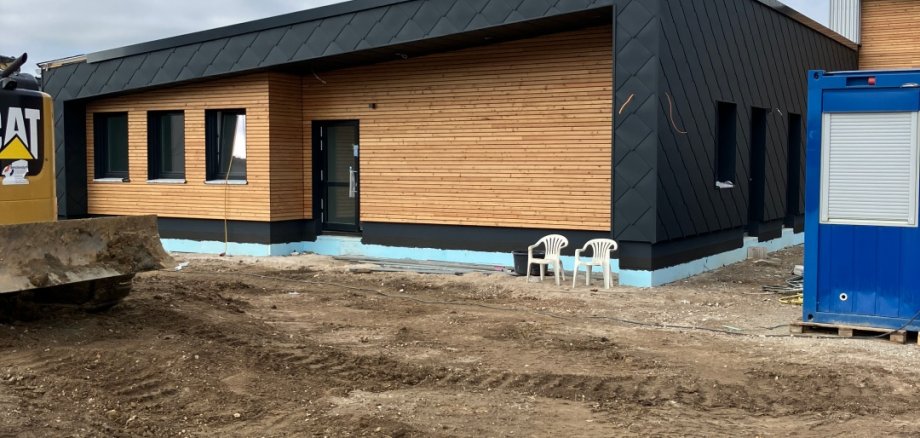 Der neue Bauhof in der Raiffeisenstraße im Norden des Harsumer Gewerbegebiets nimmt weiter Form an. Die Fertigstellung und der Bezug ist weiterhin für den Sommer 2026 geplant. Die Fassade des Sozialtraktes ist fertiggestellt. Im Innenbereich ist die Rasterdecke weitestgehend fertig. Der Maler hat den Pinsel geschwungen und nur noch Restarbeiten erledigen. Der Fliesenleger ist ebenfalls durch. Parallel wird mit dem Ausbau der Außenanlage begonnen.