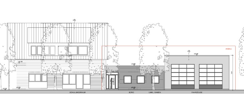 Das neue Gebäude wird dann aus einer Fahrzeughalle mit 2 Plätzen, einem Umkleide- und Sanitärtrakt, einer Werkstatt, Lager- und Büroraum bestehen. Im bestehenden Gebäude wird die alte Fahrzeughalle zu Sozialräumen für die Jugendfeuerwehr sowie Hausanschluss- und einem Technikraum umgebaut.