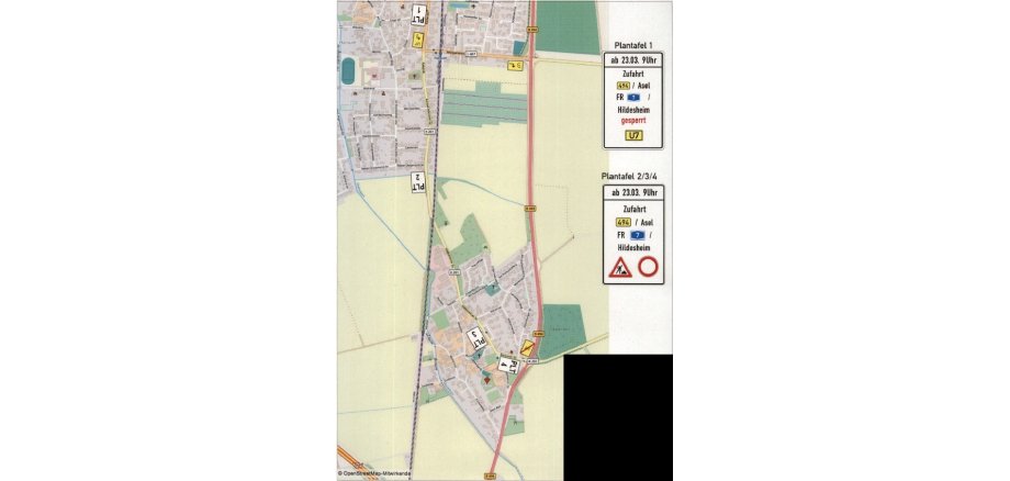Der Gemeinde Harsum wurde angekündigt, dass vom 23.03.2026 bis 07.04.2026 die Auffahrt in Asel auf die B494 voll gesperrt werden soll. Eine Umleitung führt aus Asel nach Norden über Harsum. Hintergrund ist der Austausch eines Lichtmastes an der Kreuzung nach einem Unfall.
